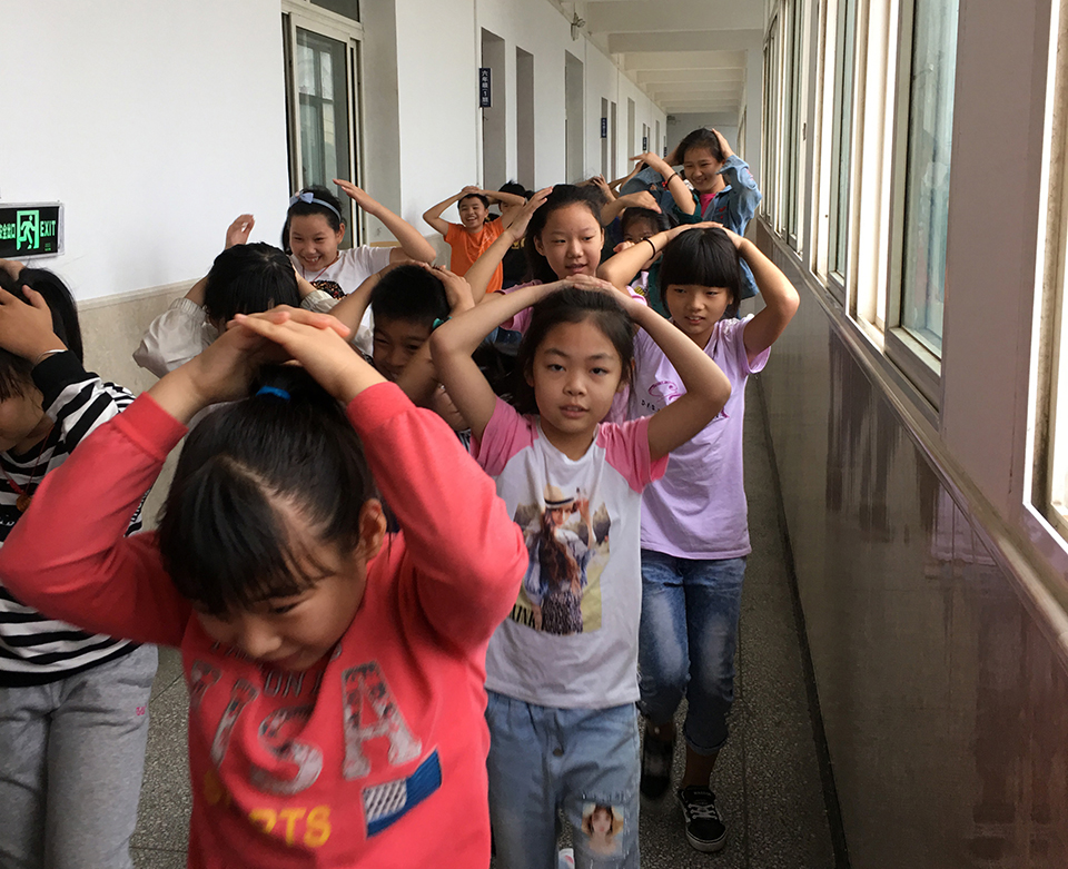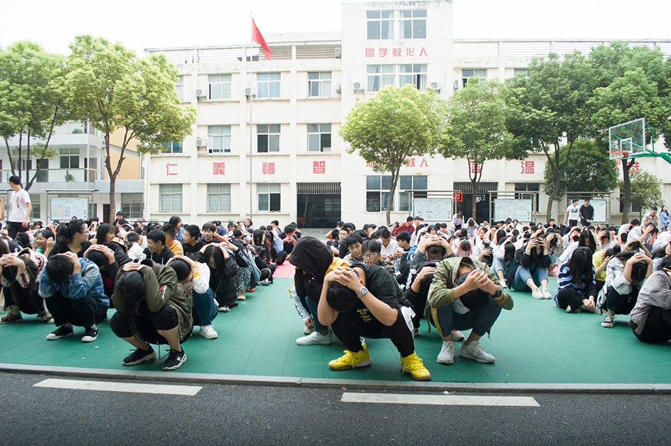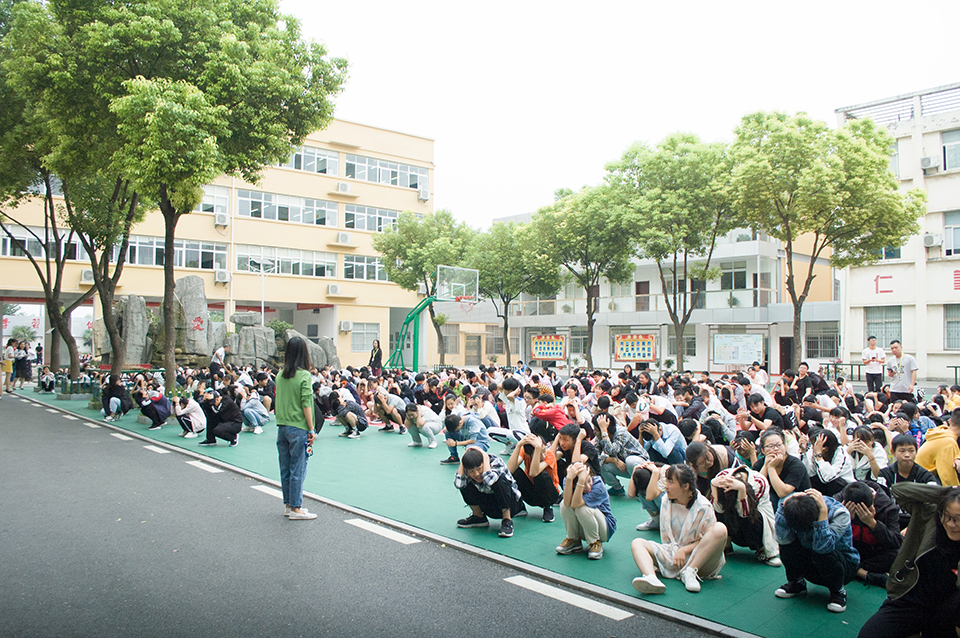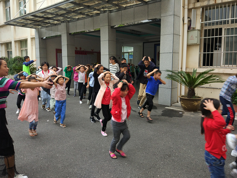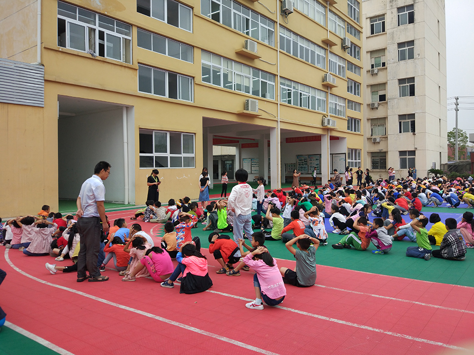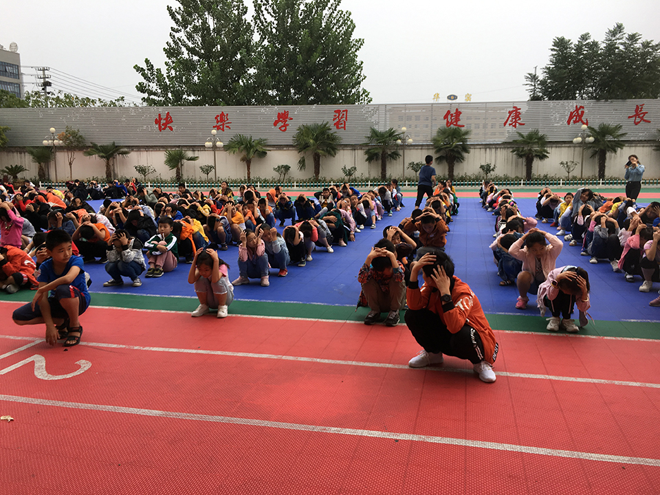 集結(jié)后,各班班長向楊校報告了自己班級的人數(shù)。楊校在操場上對同學(xué)們這次的行動指出了時間上的不足。還有在危險到來時候基本知識的認(rèn)識。