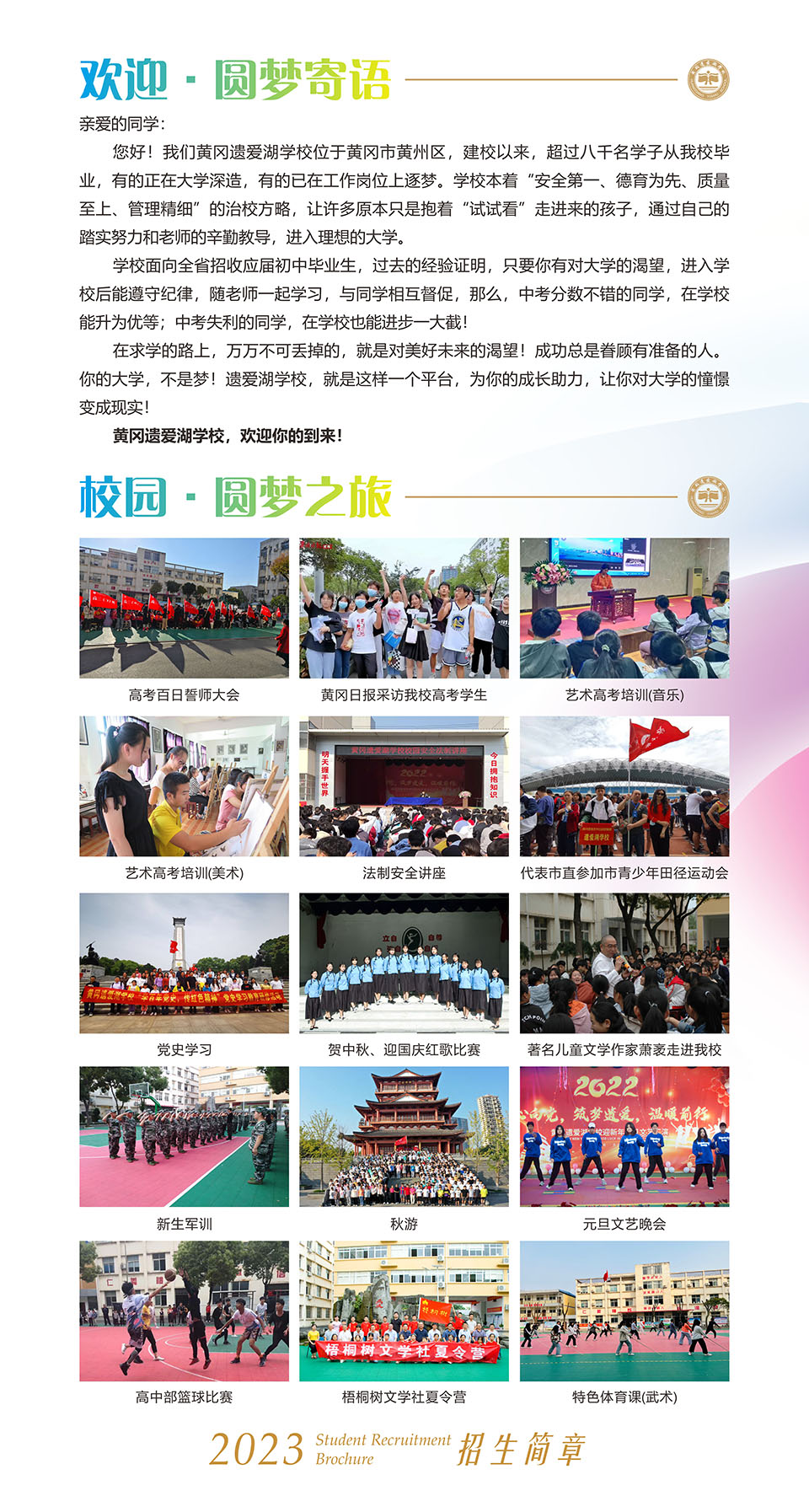 2023年黃岡遺愛湖學校高中階段招生簡章