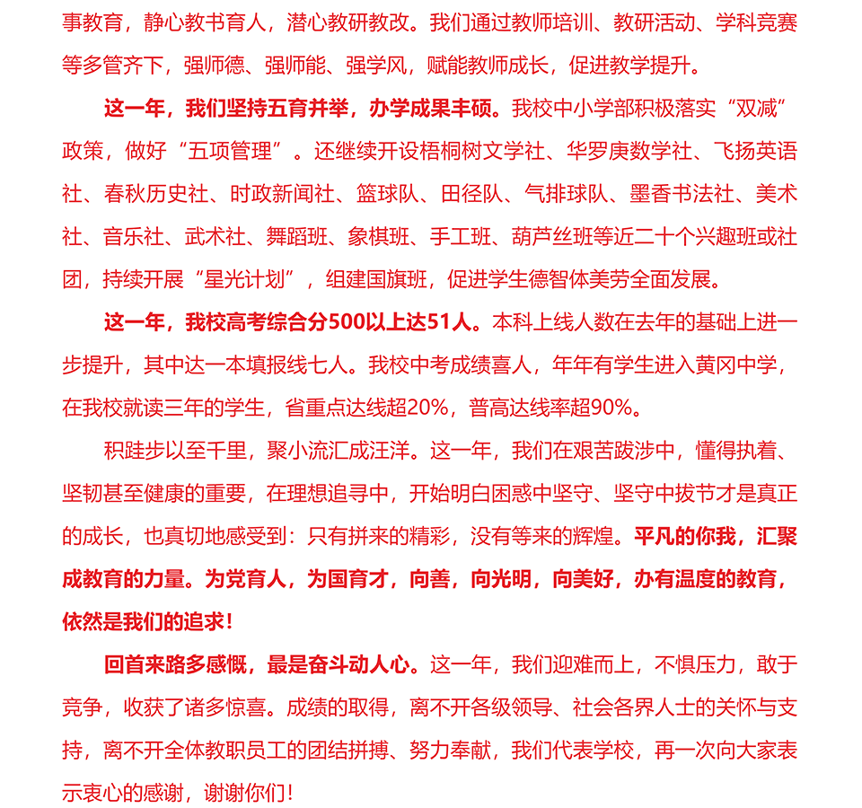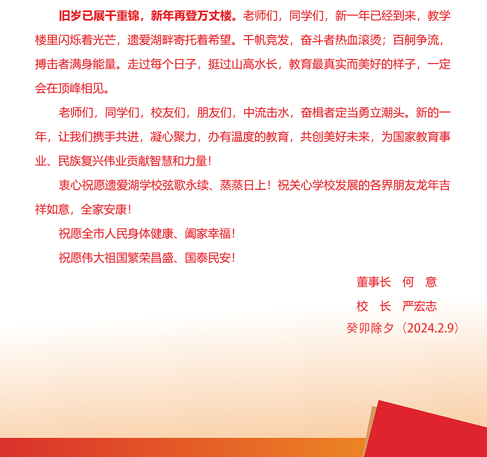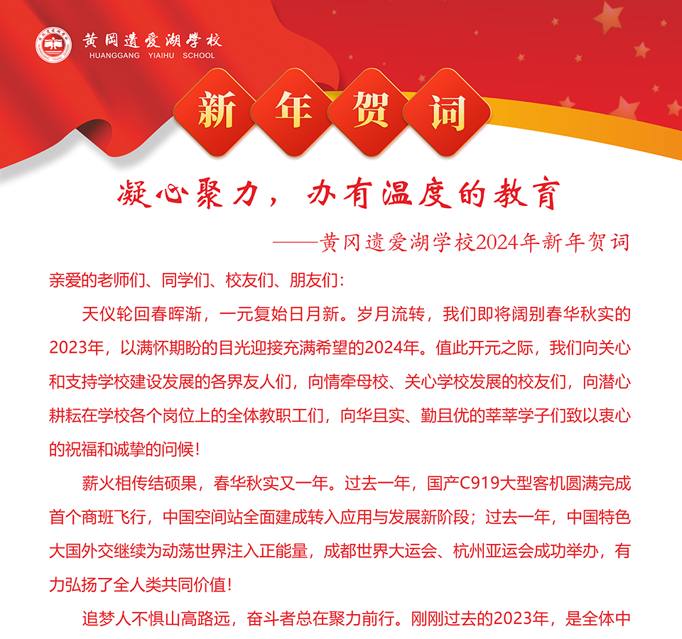 凝心聚力,辦有溫度的教育——黃岡遺愛湖學(xué)校2024年新年賀詞